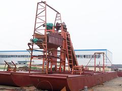 挖沙船即采掘沙石、沙矿的机械设备工具,一般为电动迁移式或柴油机械动力式。船体采用拼装式箱型结构。配有挖掘装置、筛选装置、提升装置、传送装置等。通过电机驱动挖斗上料,石块通过筛选传由输送带传出,沙子由输送带传到指定地点。